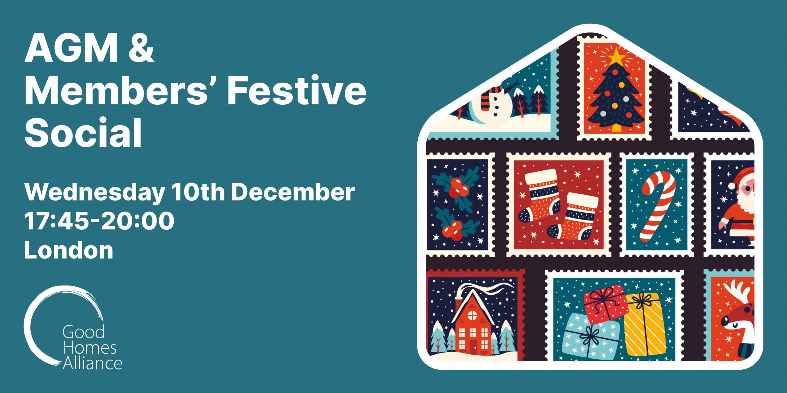 We’re delighted to invite Good Homes Alliance members to our Annual General Meeting — followed by some festive fun, drinks, and social networking with fellow members plus GHA team and board. The AGM will be a chance to hear key updates from the team, share plans for the year ahead, and have your say. Then we’ll unwind with a relaxed social and enjoy a drink with peers across the sector!